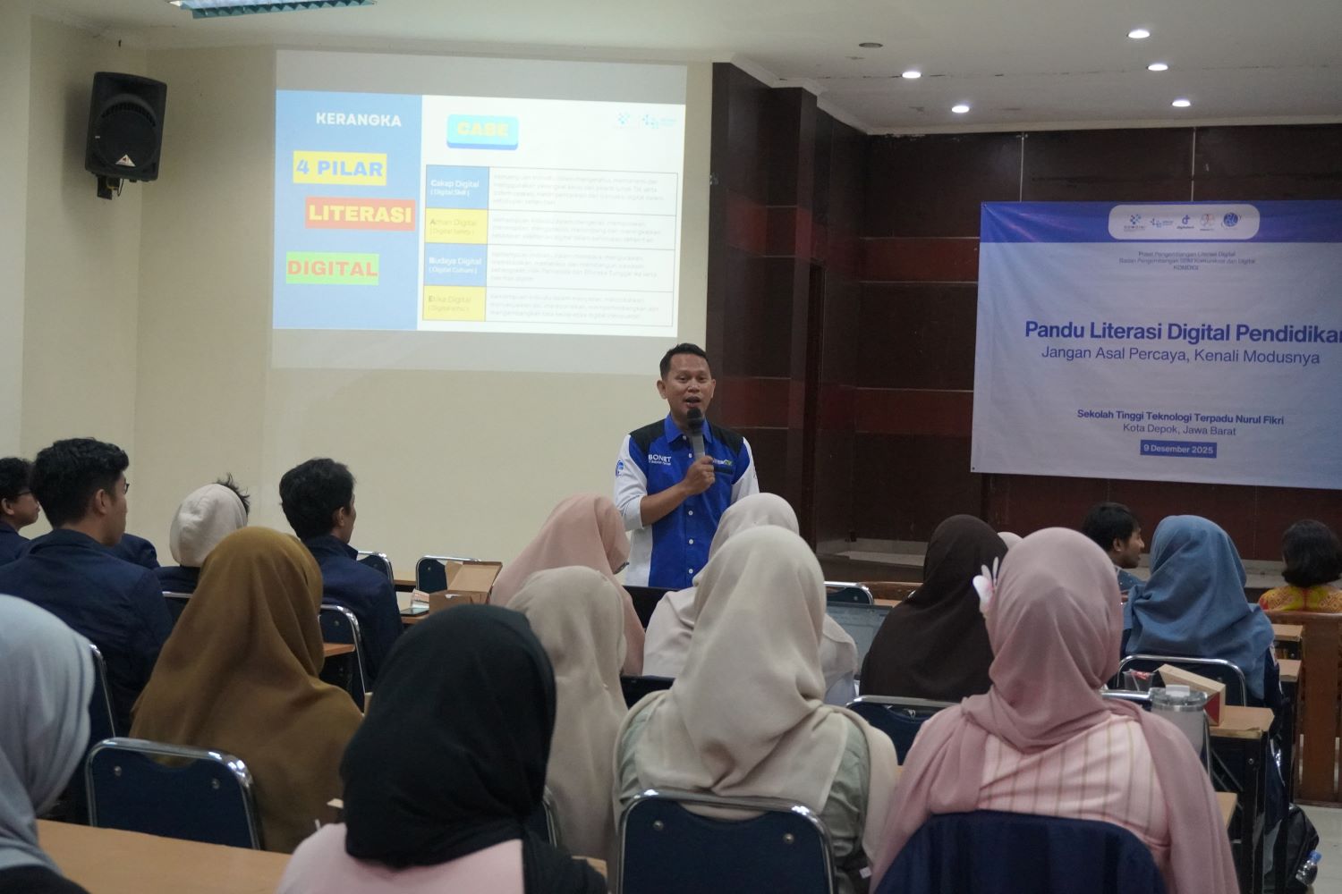 STT Terpadu Nurul Fikri (STT-NF) bekerja sama dengan Kementerian Komunikasi dan Digital (Komdigi) menyelenggarakan kegiatan pelatihan literasi digital bertema “Jangan Asal Percaya, Kenali Modusnya” pada 9 Desember 2025. Kegiatan ini dilaksanakan di Auditorium Kampus B STT-NF dan diikuti oleh lebih dari kurang lebih 100 mahasiswa dari berbagai program studi. Peserta mendapatkan pembekalan mengenai modus-modus kejahatan digital yang semakin marak terjadi seiring perkembangan teknologi.