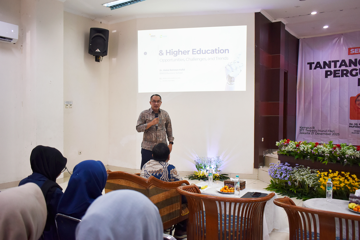 Sekolah Tinggi Teknologi Terpadu Nurul Fikri (STT-NF) menyelenggarakan Seminar Pendidikan bertajuk “Tantangan Pendidikan Perguruan Tinggi di Era Artificial Intelligence (A.I)” pada Sabtu, 27 Desember 2025. Kegiatan ini berlangsung di Kampus B STT Terpadu Nurul Fikri, tepatnya di Ruang Auditorium Kampus B, dan dihadiri oleh kurang lebih 150 peserta yang terdiri atas mahasiswa, dosen, dan masyarakat umum.